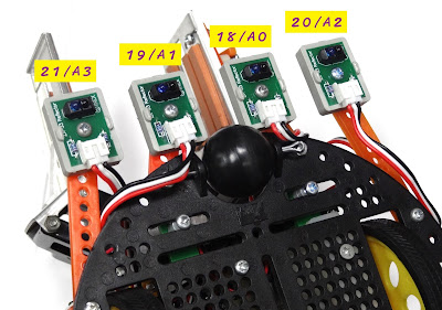 ซึ่งจะตรงกับตำแหน่งของเซนเซอร์ที่ติดตั้งอยู่ด้านใต้หุ่นยนต์ดังรูป